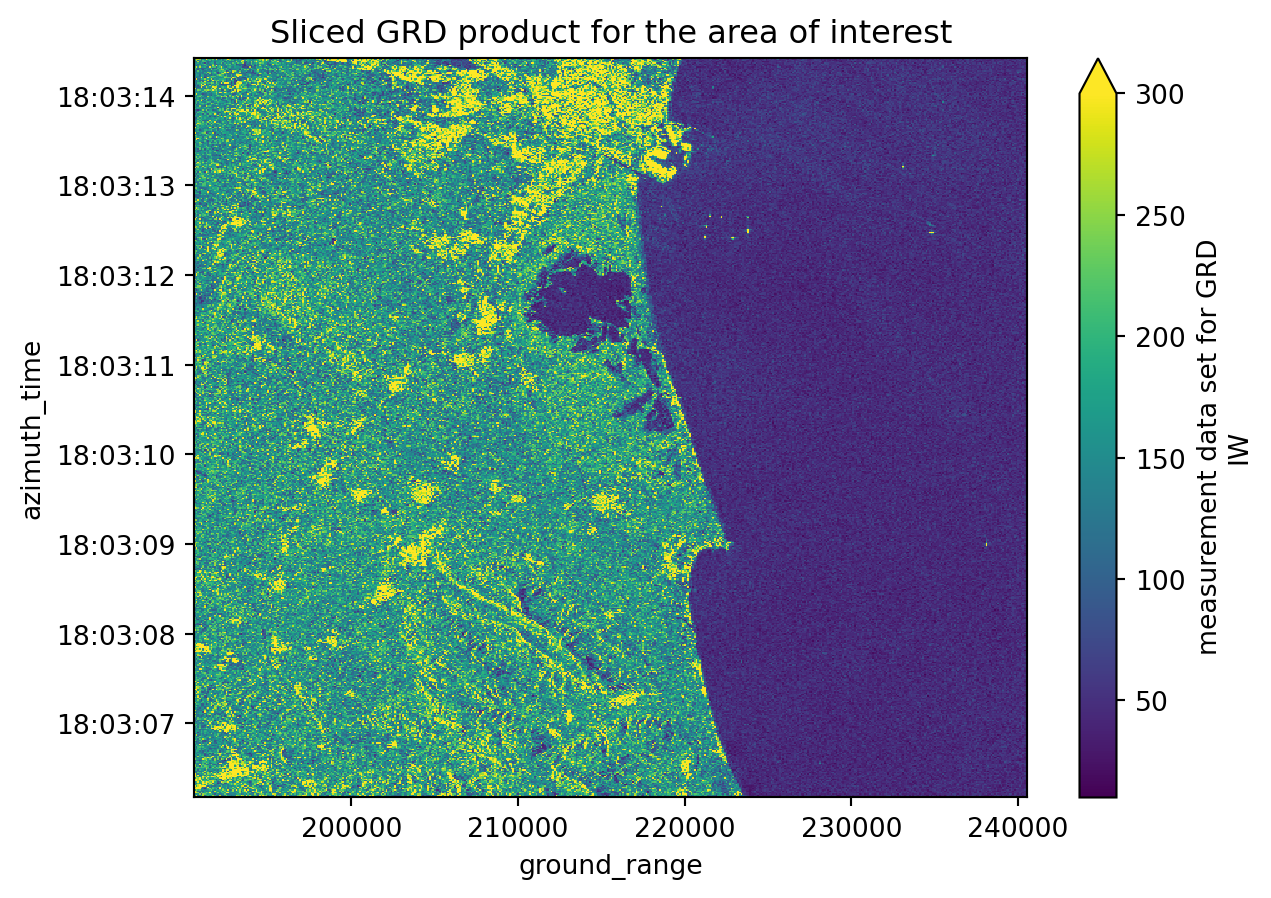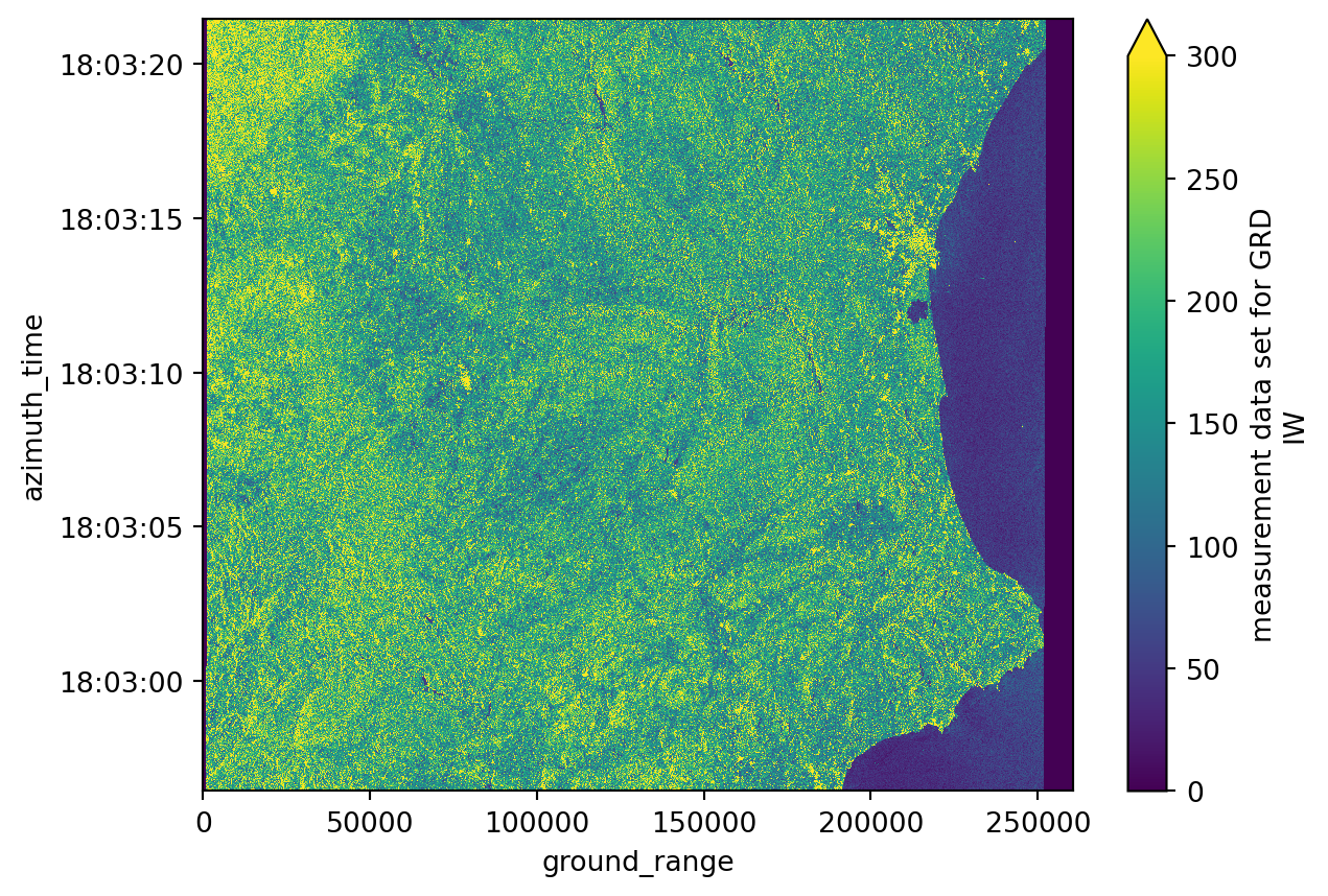 print("Ground range has", measurements[0].grd.shape[1], "values.")Azimuth time has 16677 values.